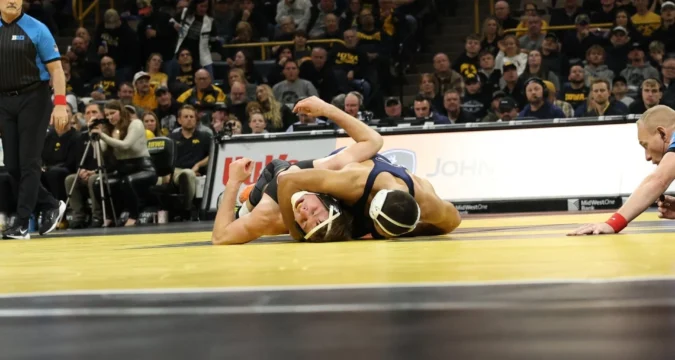 IOWA CITY, Iowa – The Penn State Nittany Lions (8-0, 2-0 B1G) dominated home-standing Iowa (8-3, 1-1 B1G) in a Big Ten dual meet in Iowa City on Friday night. Penn State won nearly every bout on its way to a 32-3 victory on the Hawkeyes’ mat.